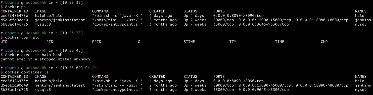 docker ps能看见xxx的 STATUS 为 Up 4 daysdocker top xxx显示出来无进程docker exec -it xxx bash显示 cannot exec in a stopped state: unknown