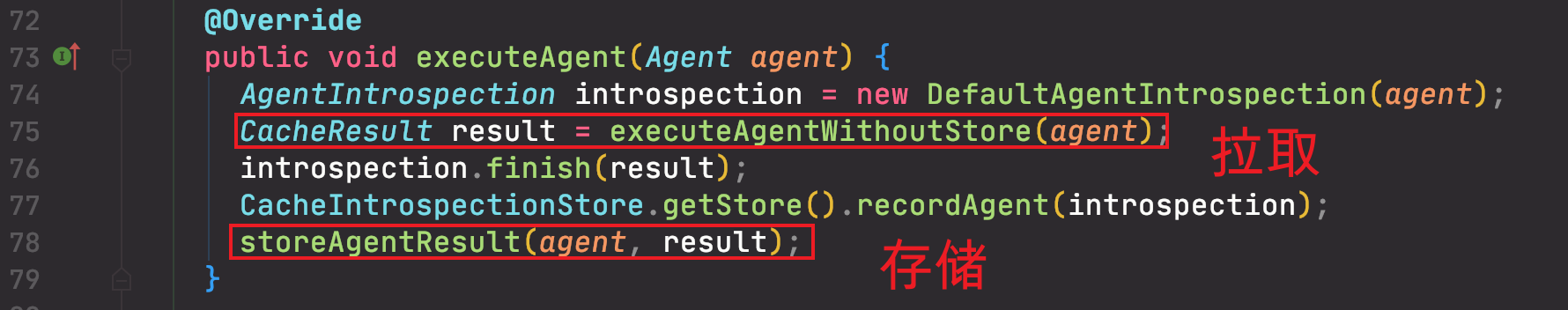 CacheResult result = executeAgentWithoutStore(agent); // 此处进入 agent 拉取逻辑
