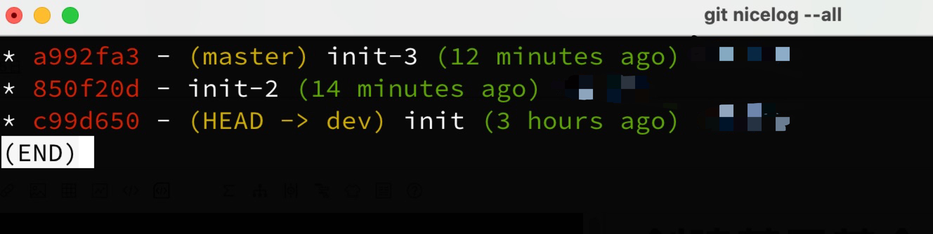 git config --global alias.nicelog "log --graph --abbrev-commit --pretty=format:'%Cred%h%Creset -%C(yellow)%d%Creset %s %Cgreen(%cr) %C(bold blue)<%an>%Creset'"